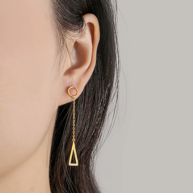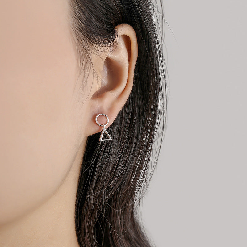 S925 Silver Asymmetric Circle Triangle Drop Earrings